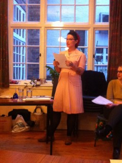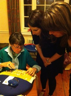 We were also fortunate to have a talk by the lovely Fran on lace-making. Fran is clearly passionate about the craft and enjoys everything about the process. She talked about the history of lace-making and gave us lots of useful info including the types of bobbins to buy if you’re a starter and the best natural thread to use. We also had a go and checked out Fran’s beautiful beaded bobbins – the favourite being the one with a mini hand clasping the beads. Thanks so much Fran!