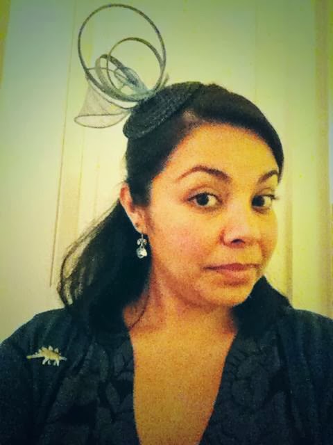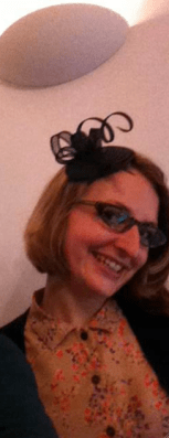 | Secretary, Laura P, shows off her delightful dark fascinator |