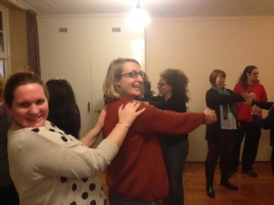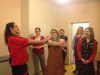 Following a refreshment of fresh cream cakes and parsnip chips (compliments of the allotment), Belles were introduced to Col Maggs of Cambridge Kung Fu who came forward to teach us some practical self defence. We were keen to learn that the number one ingredient to warn off potential attackers is confidence – if you are growling like a lion in your stance, no one will ever dare come near your pride!