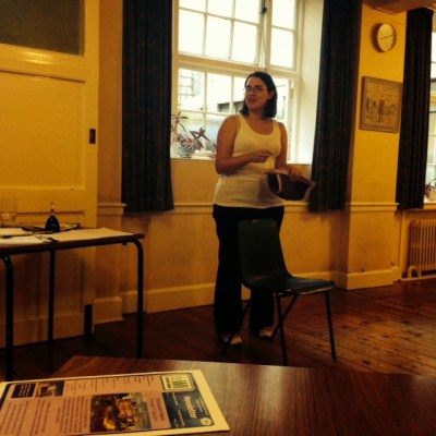 After a refreshment consisting of homemade cake and raffle tickets a plenty (check out the photo of our raffle prizes – including earrings made by uber talented Seven Hills WI member, Laura B and the biggest potato of the bunch from the allotment!), the Belles took audience with Lucy Lewis, the Army’s first female bomb disposal officer.