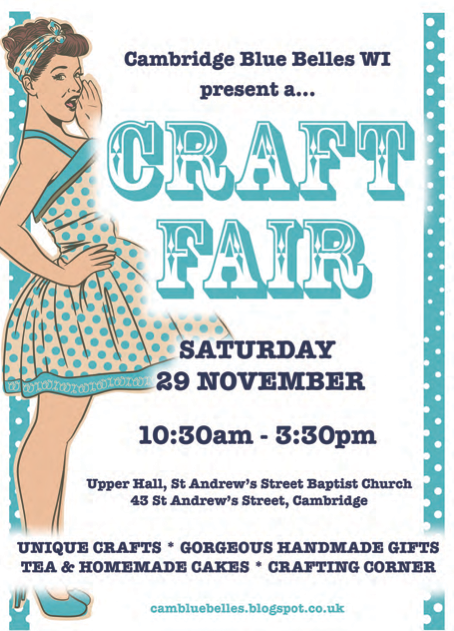Our next glorious gathering of WI sisterhood from all stretches of the country will be in the form of a Craft Fair on Saturday 29th November, 10:30 – 15:30 at the St. Andrew’s Street Baptist Church. Fellow WI members are warmly encouraged to participate and hire a stall at the fair. Click here for further info and be sure to drop by for some fabulous home made delights a plenty!
