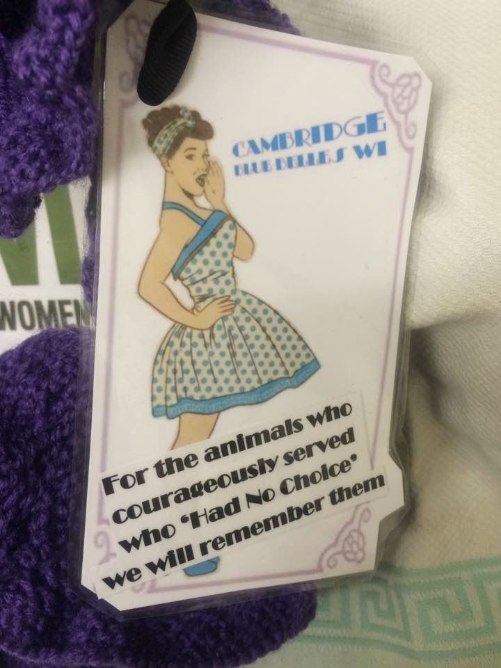 Last and by no means least our Pres Joanne put down Purple Poppies for Remembrance Day. For those animals who had no choice. Knitted by her own (& freshly tattooed ;-P ) fair self.