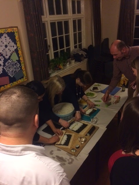 | Sophie & Helen show off their first attempt at sushi rolling – tres profesional! |